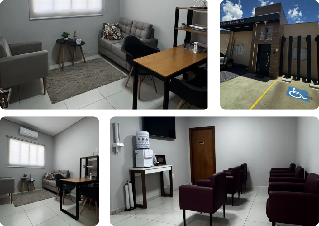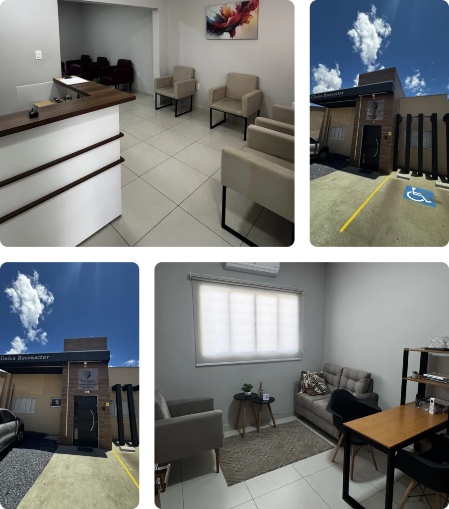 A Clínica Reconectar nasceu com o propósito de reconectar pessoas consigo mesmas, auxiliando no desenvolvimento do equilíbrio emocional, da consciência e do bem-estar. Cada espaço foi pensado para acolher, escutar e caminhar junto com o paciente em seu processo de crescimento e transformação emocional.
